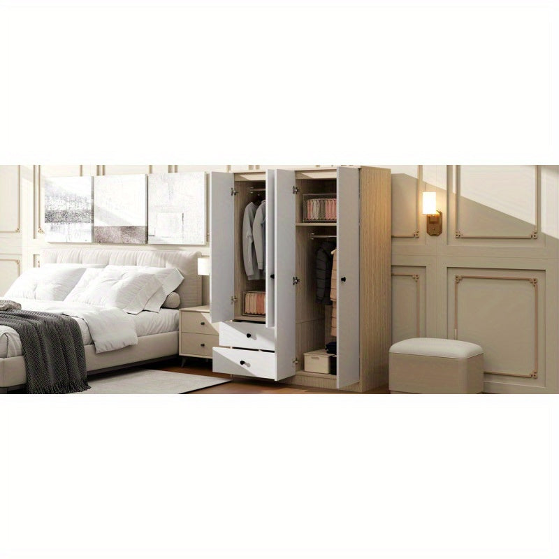 4 Door Wardrobe Closet with Drawers Shelf and Hanging Rod White