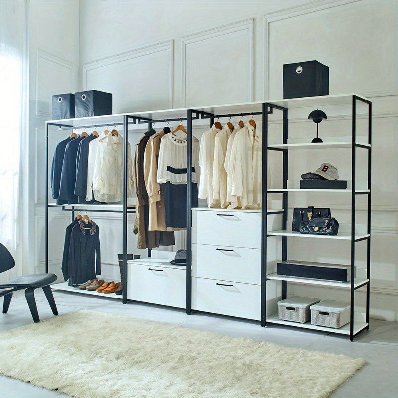 Fiona White Freestanding Walk-In Closet System with Sleek Metal Frame - Multi-Section Organizer for Efficient Storage, Ideal for Bedroom & Hallway, Clothes Organizer Storage