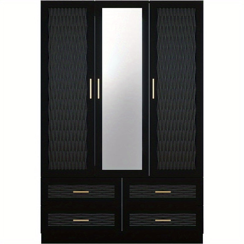 Large Capacity Wooden Armoire Wardrobe Closet with 3 Doors, Hanging Rods, 4 Drawers & Shelves - Black Storage Cabinet Organizer for Bedroom