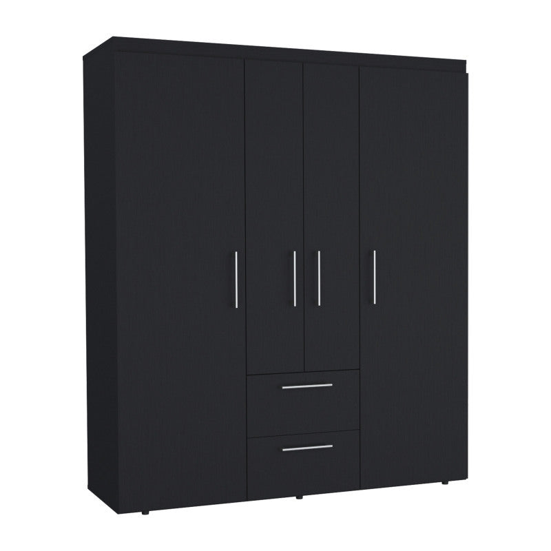 Wardrobe Deluxe Armoire with Multiple Storage Options and Metal Accents Black